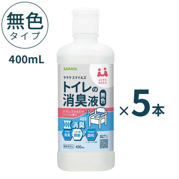【5本セット】 ポータブルトイレ 消臭剤 介護 スマイルズ トイレの消臭液 400mL 無色タイプ サラヤ 酸性タイプ ポータブルトイレ消臭液 まとめ買い 介護用品