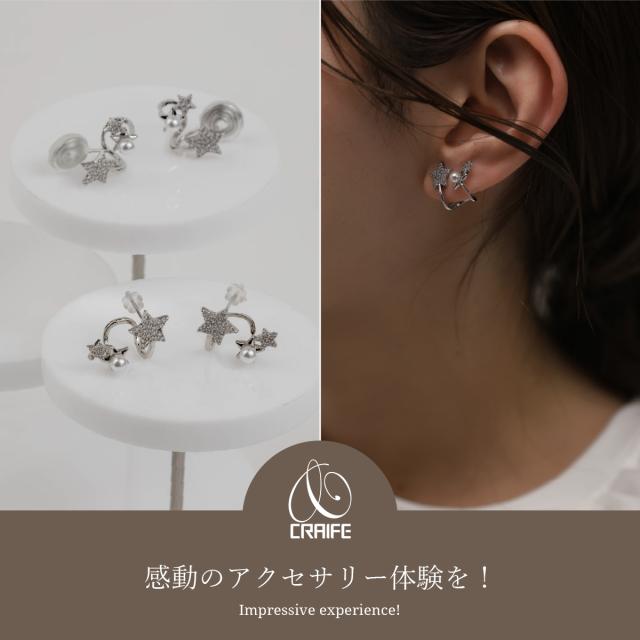 痛くない イヤリング ピアス 金属アレルギー対応 14Kコーティング イヤーカフ イヤカフ ジルコニア ジュエリー ゴールド 両耳用 送料無料 プチプライス高見え CRAIFE