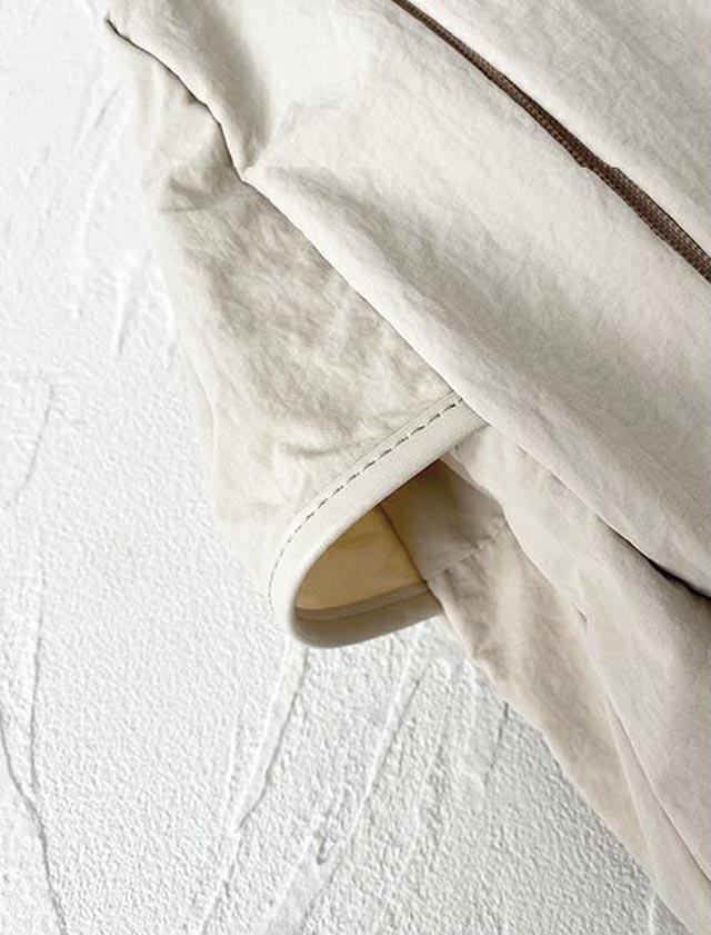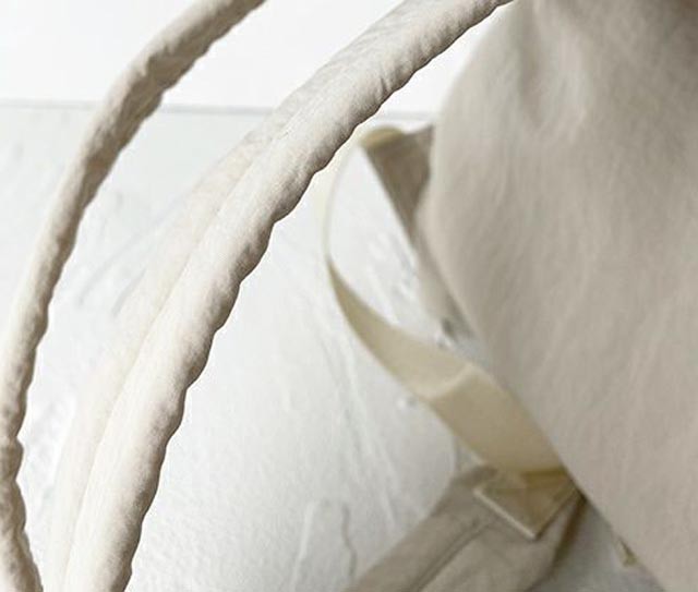 オックスフォード生地や帆布素材と比べますと生地感はやや薄手ではございますが、