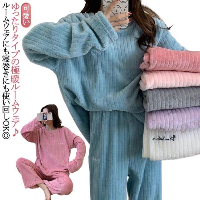 ルームウェア 上下セット もこもこ パジャマ ルームウェア 上下 着る毛布 長袖 冬 温かい あったかい セットアップ 軽い かわいい 大きいサイズ パジャマ セット 大人 部屋着 パンツ ふわふわ 秋 秋冬 可愛い ゆったり 裏起毛 フリース
