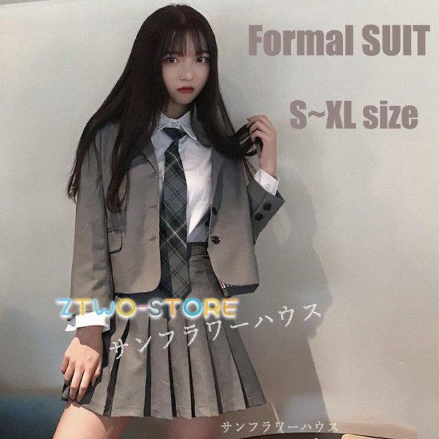 卒業式 フォーマルスーツ 女子 女の子 スーツ ホワイト グレー 3点セット 卒服 プリーツスカート スクール 制服 スカート発表会 お受験 チェック柄 無地 女子 高校生 小学校 フリーサイズ ゆったり S M L XL 単品販売