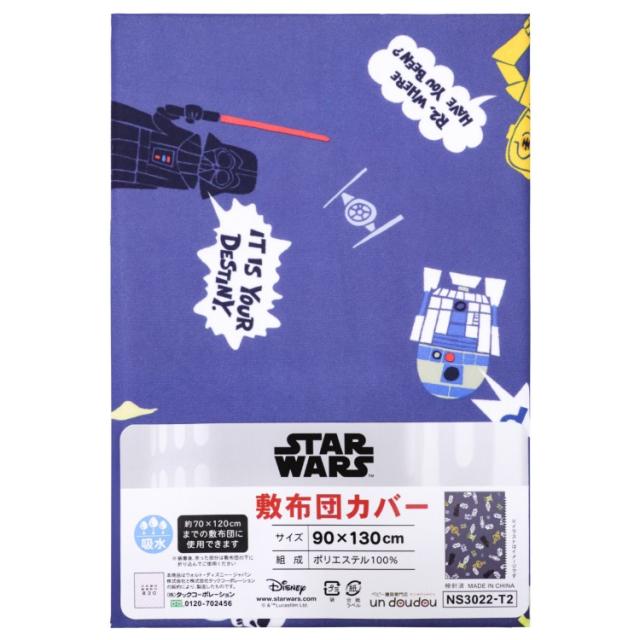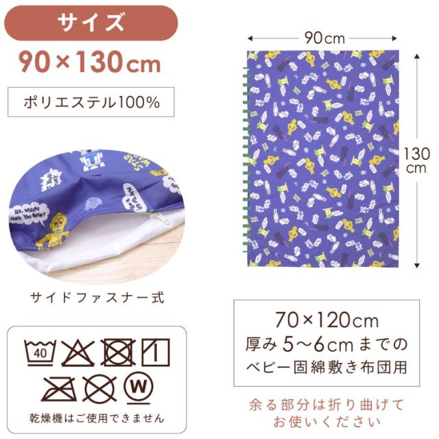 スターウォーズ ベビー 敷布団カバー 90×130cm STAR WARS 吸水加工 ピーチスキン生地 ファスナー ベビー用品 新品 新生児 ヨーダ ダースベイダー R2-D2 ブルー un doudou メール便発送(ポスト投函) NP