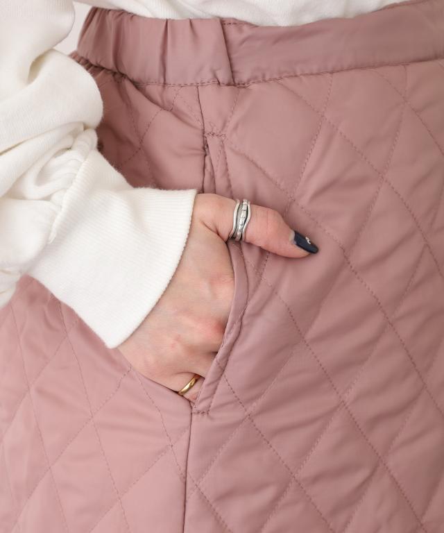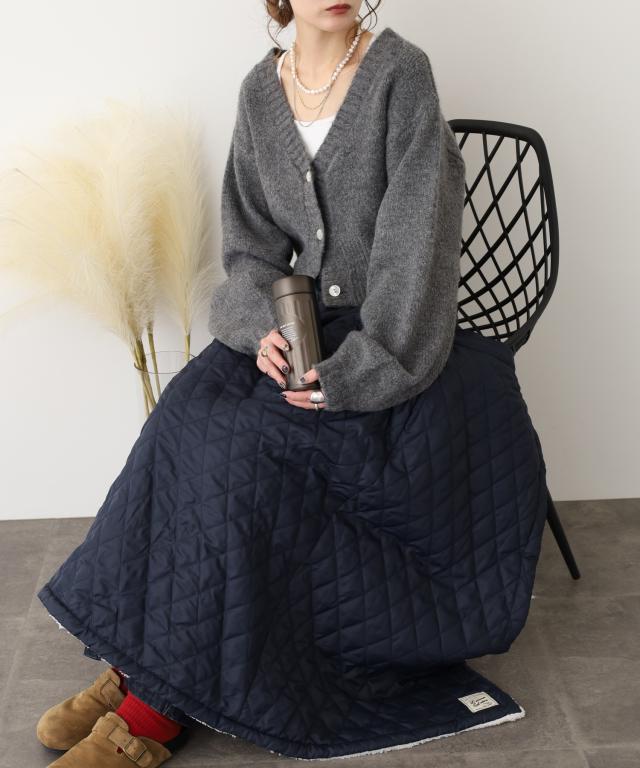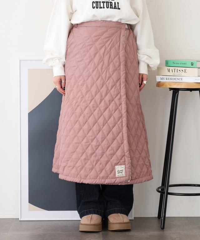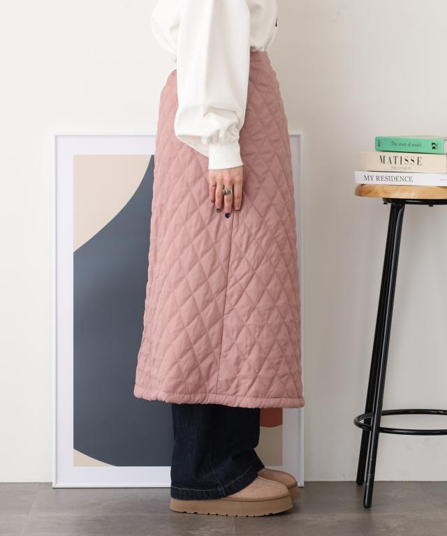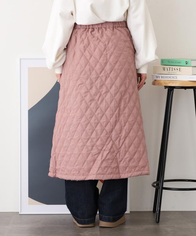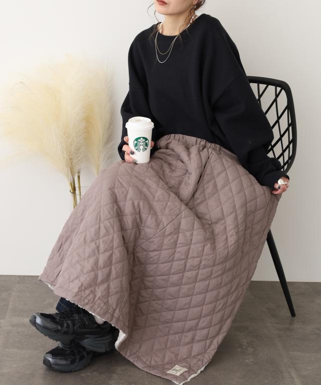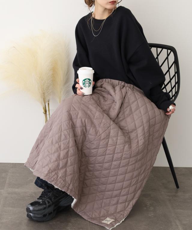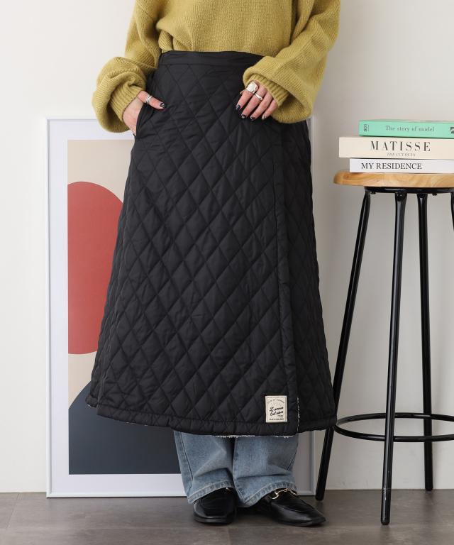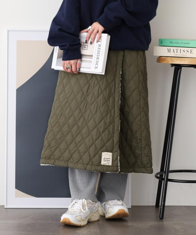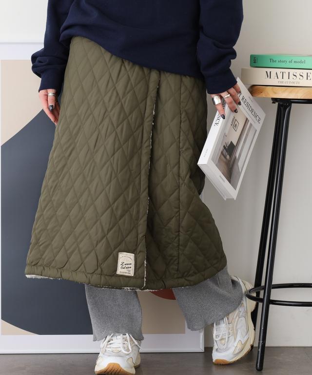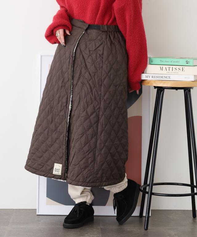 ・軽くて暖かいキルト×ふわもこ裏ボア仕様のロング巻きスカート。