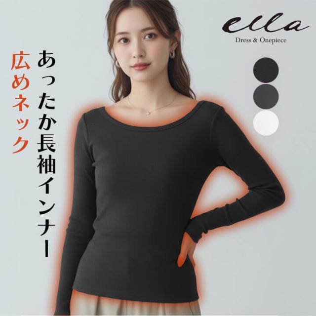 あったかインナー 広めネック 長袖 インナー レディース 下着 肌着 ブラ紐隠し ボートネック ラウンドネック 快適 トップス インナートップス 柔らか しっとり 滑らか 洗い替え デイリー 普段使い 旅行用 トラベル 肌着 快適インナー 薄手 暖かい 響きに