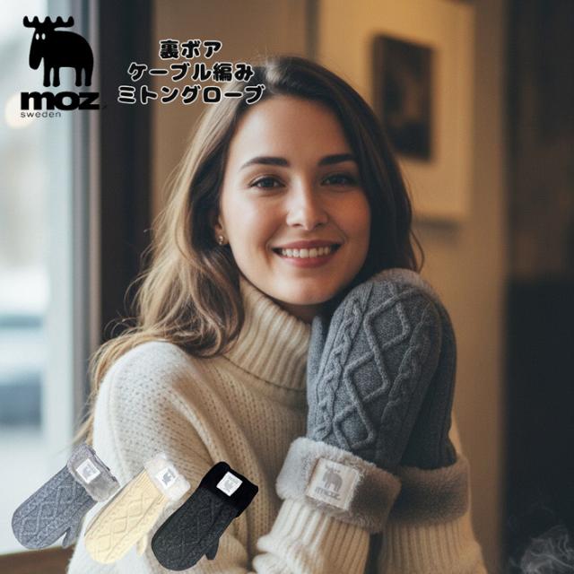 mozの裏ボアケーブル編みミトングローブは、寒い季節に最適な防寒アイテムです。