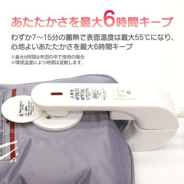 わずか7〜15分の蓄熱で表面温度は最大55℃になり、心地よいあたたかさを最大6時間キープ