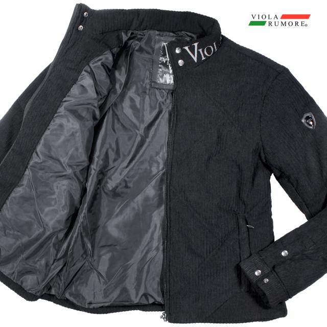 VIOLA rumore ヴィオラ ビオラ 中綿ジャケット ストライプ起毛 刺繍 メンズ アウター ダウンジャケット mens(ブラック黒) 62105