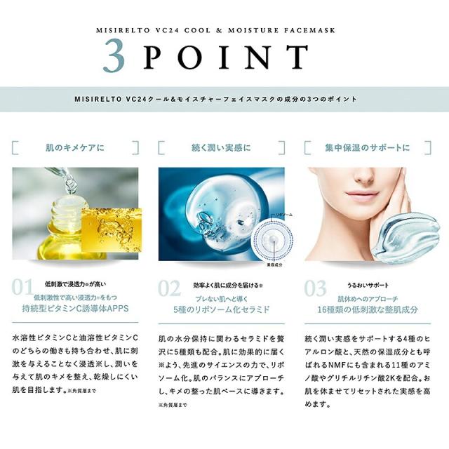 ミシレルト VC24 【3枚セット】クール&モイスチャーフェイスマスク シートマスク シートパック フェイスパック MISIRELTO salonDRE 【送料無料】【全品正規品/実店舗ストア】