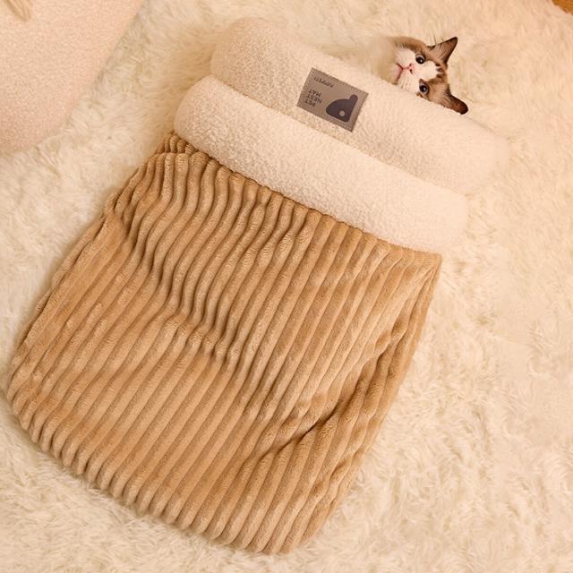 寒い冬の季節、ねこちゃん・わんちゃんのおやすみ時間を心地よく。猫・超小型の犬のためのペットベッド(寝袋型ふとん)