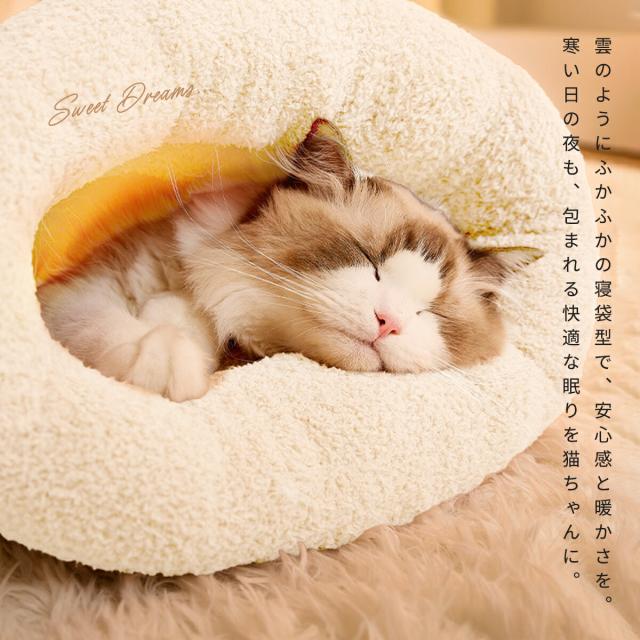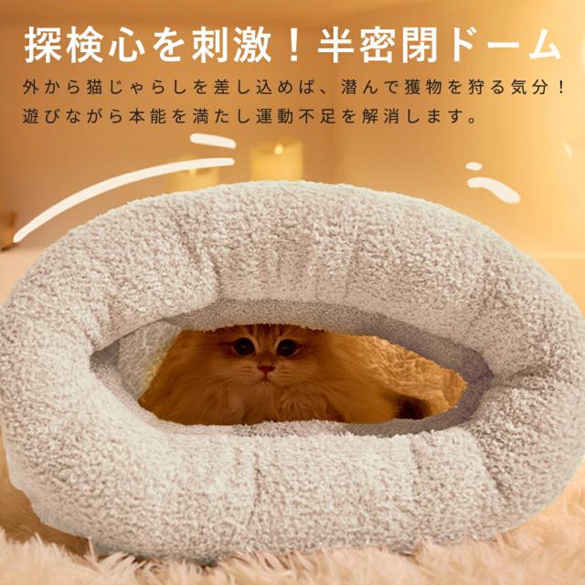 おしゃれでかわいいデザインの猫用ベッド・犬用ベッド。半閉鎖の円筒型デザインは、ネコやイヌが本能的に求める隠れ家を再現。もぐれる安心構造で熟睡をサポートします。
