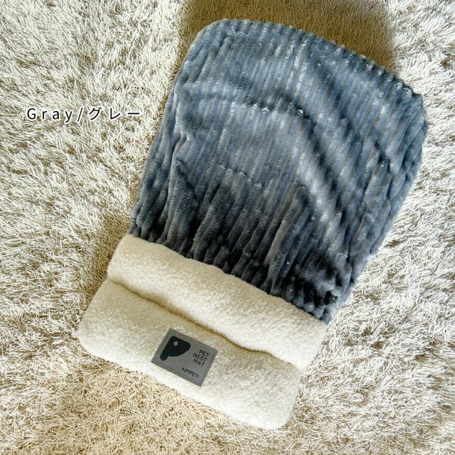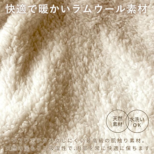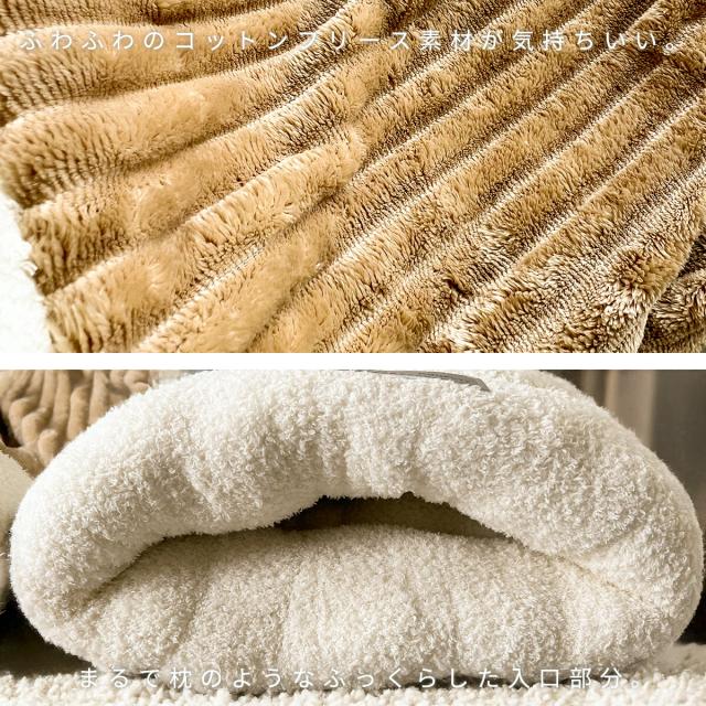 内側はラムウール素材。暖かいふわふわ布団のような触感が、子猫/子犬を優しく包み込みます。