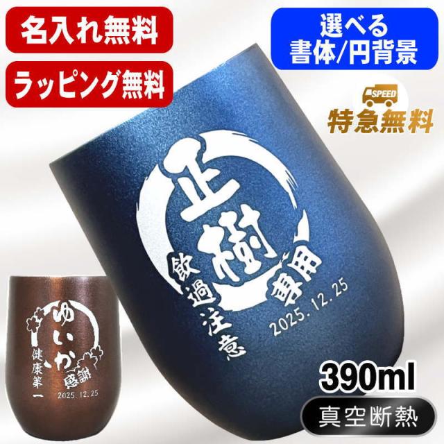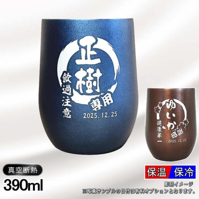 名入れ タンブラー 名前入り プレゼント 真空断熱 保温 保冷 ステンレス 彫刻 刻印 グラス コップ おしゃれ ビールグラス 父の日 母の日 還暦祝い 退職 誕生日 結婚祝い 実用的 ネーム入れ 男性 女性 バースデー ギフト 送料無料 紺 ブラウン 単品 390 ml 円背景 EH45