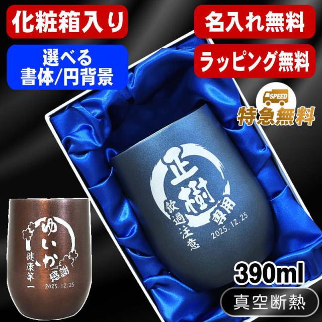 【化粧箱入り】 名入れ タンブラー 名前入り プレゼント 真空断熱 保温 保冷 ステンレス 彫刻 刻印 グラス コップ おしゃれ ビールグラス 父の日 母の日 還暦祝い 退職 誕生日 実用的 ネーム入れ 男性 女性 バースデー ギフト 送料無料 紺 ブラウン 単品 390 ml 円背景 EH46