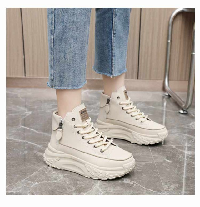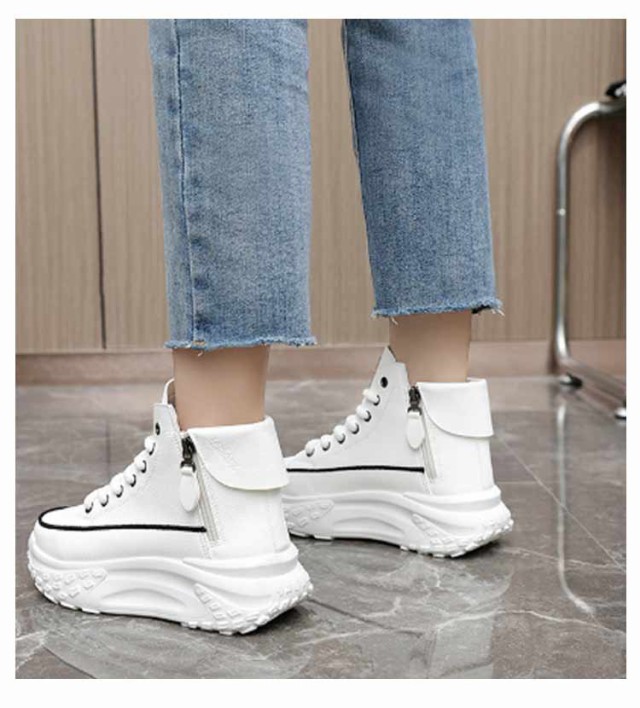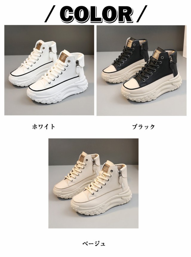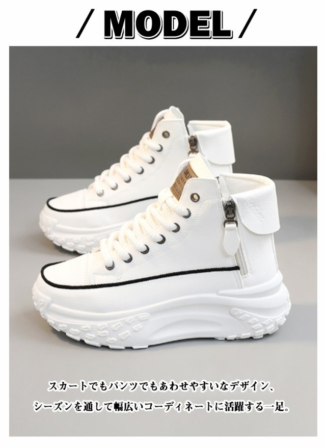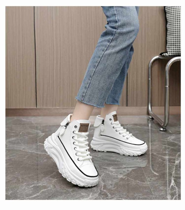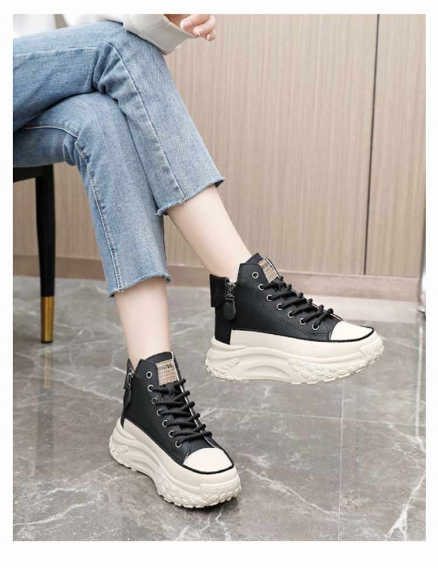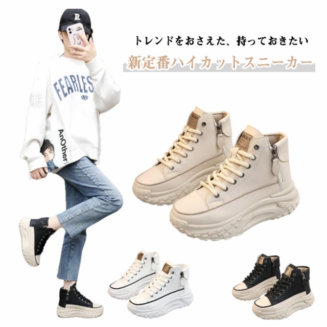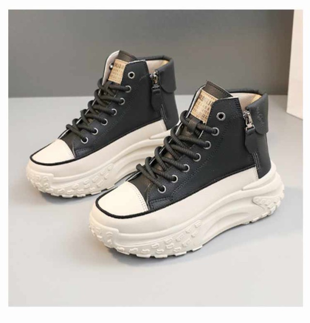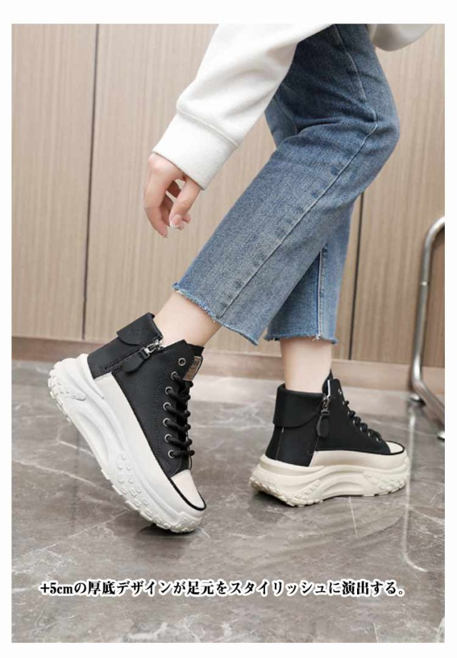 レディース シューズ ハイカットスニーカー ハイカットスニーカー 黒 歩きやすい 厚底 韓国ファッション 脚長 おしゃれ レースアップスニーカー ボリュームソール 厚底スニーカー 白 疲れない ホワイト ブラック 厚底靴 スニーカー 春 夏 秋 冬 四季