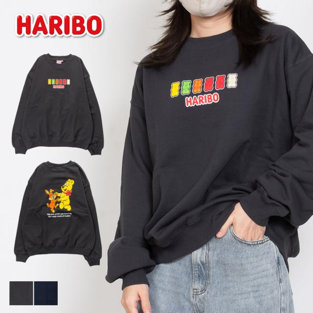 HARIBO ハリボー トレーナー メンズ レディース プリント アメカジ おしゃれ スウェット かわいい 可愛い プルオーバー 裏毛 長袖 クルーネック トップス チャコール ネイビー 紺 2025 秋 秋冬 冬