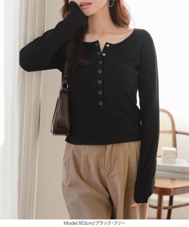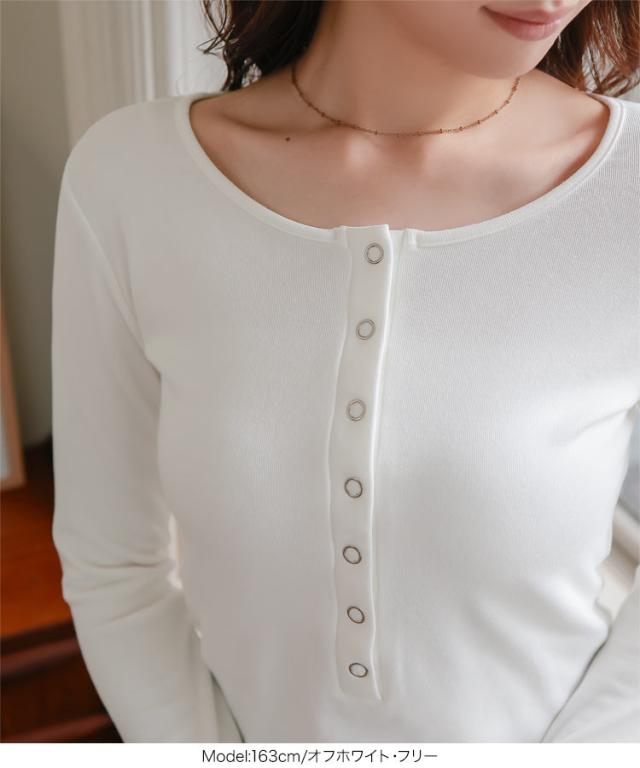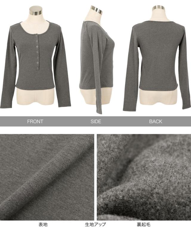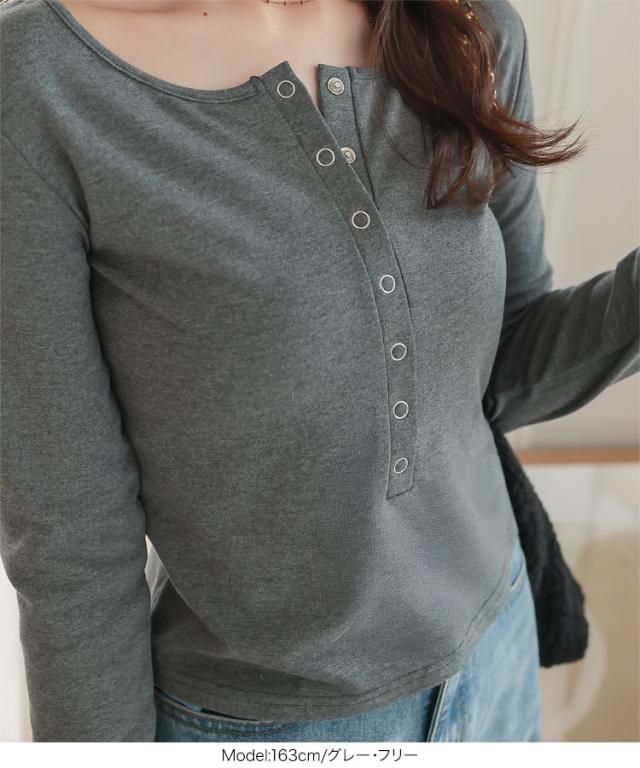 [ 裏起毛 ] ヘンリーネックロンT C7749 入荷済 レディース 20代 30代 40代 裏起毛 あったか 暖かい 長袖 ロンT カットソー ヘンリーネック ヘンリーネックロンT 授乳 ママ 母 前開き 柔らかい メルティ トップス 丸首 Uネック