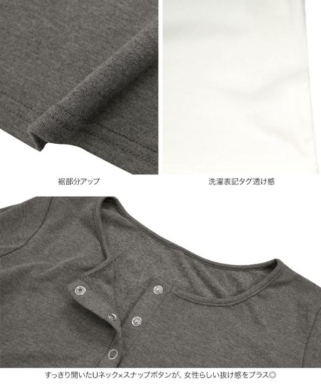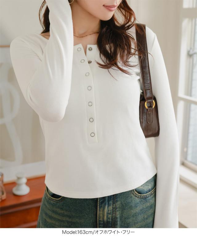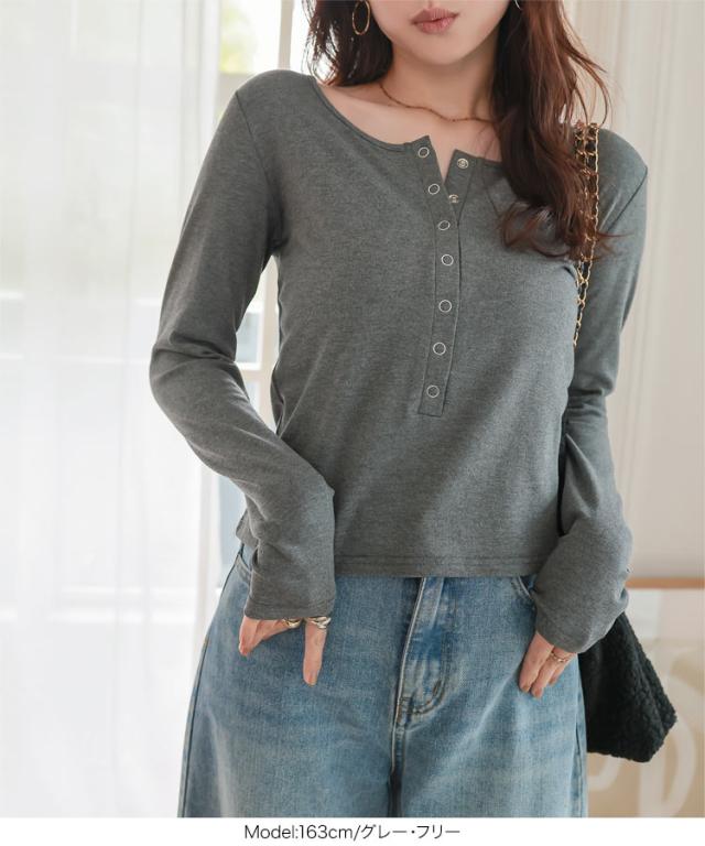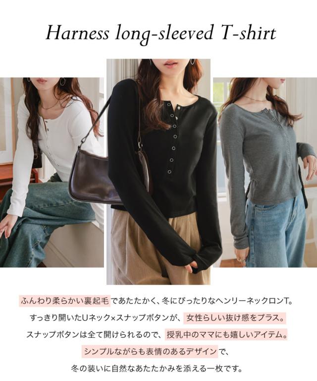 ふんわり柔らかい裏起毛であたたかく、冬にぴったりなヘンリーネックロンT。すっきり開いたUネック×スナップボタンが、女性らしい抜け感をプラス。スナップボタンは全て開けられるので、授乳中のママにも嬉しいアイテム。1枚ではもちろん、ニットやパーカー、アウターのインナーとしても重ね着しやすい万能トップス。シンプルながらも表情のあるデザインで、冬の装いに自然なあたたかみを添える一枚です。【素材・サイズ感】暖かい裏起毛のカットソー生地。程よいフィット感で、体のラインを拾いすぎずすっきり見えるシルエット。ボディラインを拾いすぎず、インナーとしてもトップスとしても使いやすいサイズ感。すっきりと見えるコンパクトな丈感で、ボトムインもしやすくバランスの良いシルエット。ベーシックで着回し力の高い、デイリーに活躍する長袖カットソーです。※キャンセル/変更不可※※お届けまでの日程について