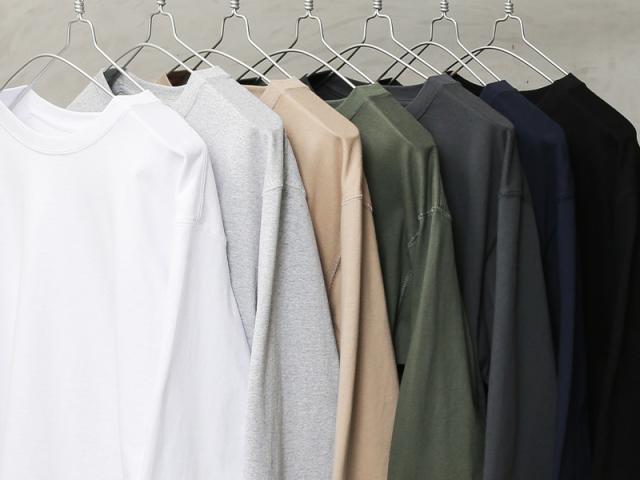 Goodwear グッドウェアより、USAコットンを使用した、ラウンド裾が特徴のロングスリーブTシャツの登場です。生地には、タフで肉厚の7.6オンスUSAヘビーコットンを使用。しっかりとタフな生地感でありながら、洗い加工を施しているので、柔らかく、快適に着用可能です。裾まわりに丸みを持たせたラウンド仕様を採用。レイヤードした際には、アウターやスウェットの下から裾が自然に覗き、スタイリング全体に立体感が生まれるのも魅力。縦のラインを強調してくれるので、スッキリとした印象で着こなせます。またドライ感とコシがあるのが特徴で使い込み、洗いを重ねることでヴィンテージ感の風合いを楽しめるのも嬉しいポイントです。