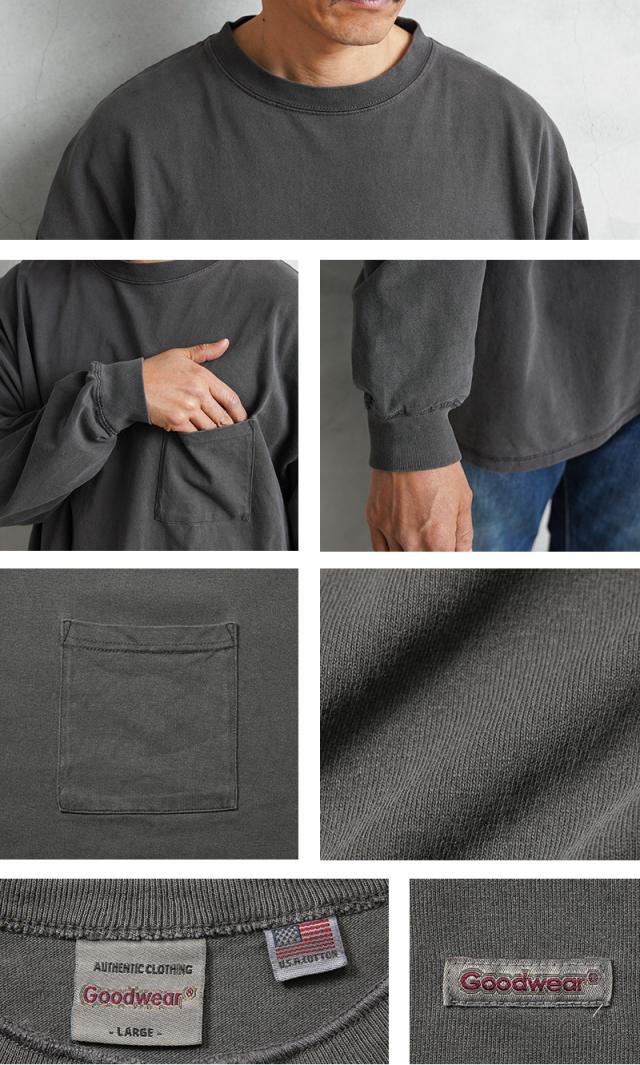 Goodwear グッドウェア 2W7-65203 USAコットン ガーメントダイ L/S ポケット Tシャツ SUPER BIG【T】