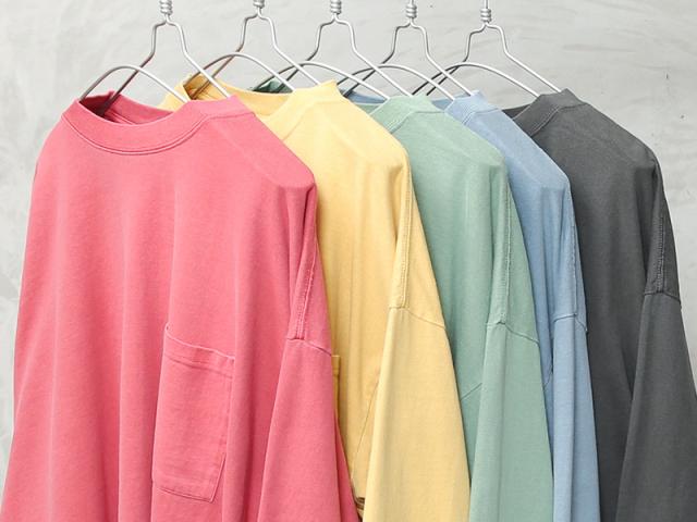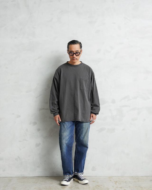 Goodwear グッドウェアより、ガーメントダイ(製品染め)を施した、ロングスリーブTシャツの登場です。生地には、タフで肉厚の7.6オンスUSAヘビーコットンを使用。しっかりとタフな生地感でありながら、洗い加工を施しているので、柔らかく、快適に着用可能です。ゆったりとした身幅で、トレンド感のあるオーバーサイズシルエットで1枚でも抜け感のある着こなしが可能です。 縫い上げた後に染色を施す 製品染め(ガーメントダイ) を採用し、まるで長く着込んだような 深みのある色合いと独特のムラ感 を表現した一枚となっております。 またドライ感とコシがあるのが特徴で使い込み、洗いを重ねることでヴィンテージ感の風合いを楽しめるのも嬉しいポイントです。