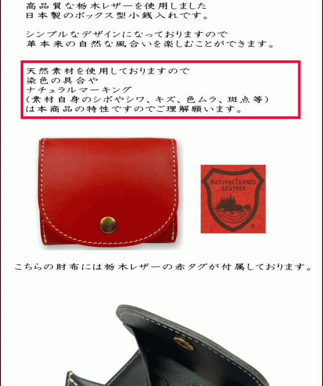 小銭入れ 財布 日本製 栃木レザー 本革 ボックス型 コインケース LAH-02 チョコ色 レッド色 キャメル色 ネイビー色 ブラック色 グリーン色