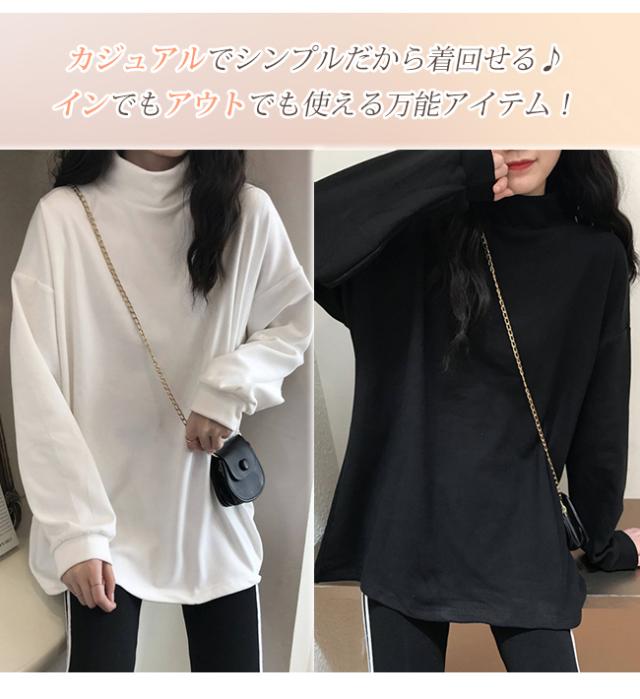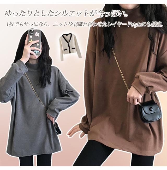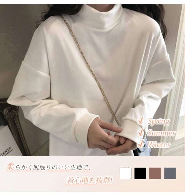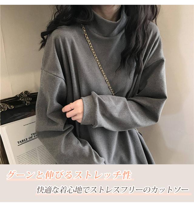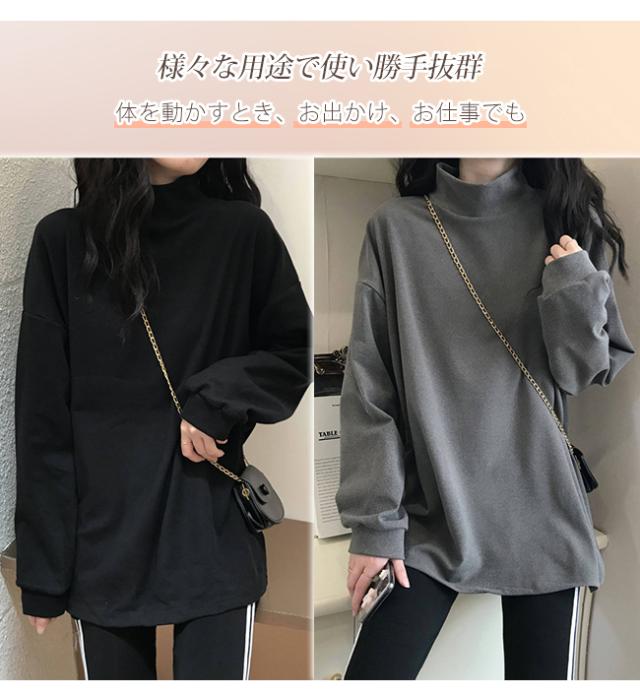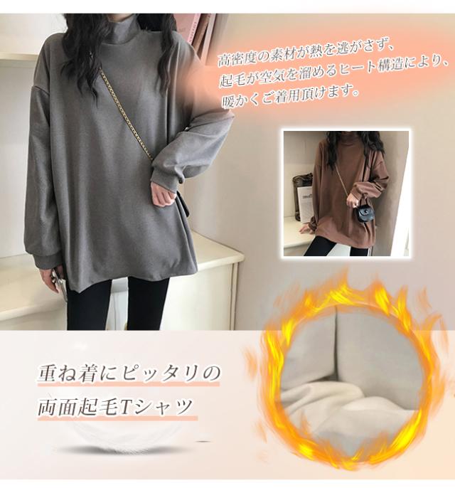 冬新作 Tシャツ カットソー 両面起毛 ハイネック あったか インナー ロンT 長袖 モックネック プルオーバー 吸湿発熱 保温 ゆったり カジュアル ポイント消化