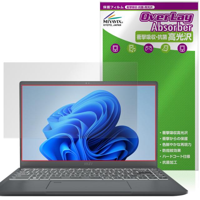 MSI Prestige 14 A12U 保護フィルム OverLay Absorber 高光沢 for エムエスアイコンピュータージャパン 衝撃吸収 ハードコート 抗菌