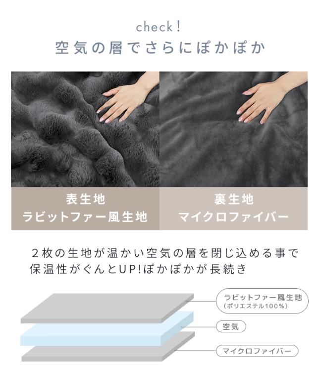 表はふんわり柔らかいラビットファー風生地、裏は滑らかで保温性の高いマイクロファイバー