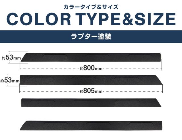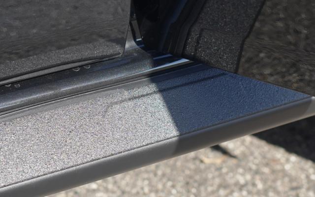重厚感のあるラプターライナー塗装がサイドビューにタフな印象を与え、下部にあしらったアクセントが力強さと安定感をプラスします。
