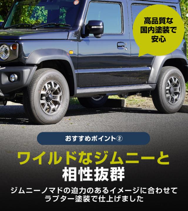 ジムニーノマド JC74W 専用 サイドリップガーニッシュ 4P ラプターライナー塗装 外装 カスタム パーツ アクセサリー ドレスアップ 社外品 エアロ オプション 装飾品