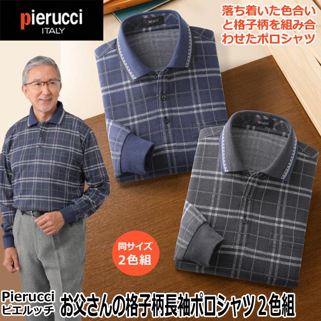 Pierucci(ピエルッチ)お父さんの格子柄長袖ポロシャツ2色組 メンズ 紳士 秋冬 長袖 チャコール系 ネイビー系 2枚セット 暖か 防寒 父の日 敬老の日 ギフト プレゼント