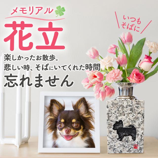 ペット花立 白御影石 チワワ 柄 楽しかった思い出とともに ペット祭壇 ペット墓 メモリアル花立 B0F93S8BXJ