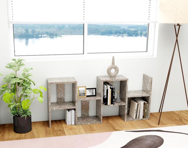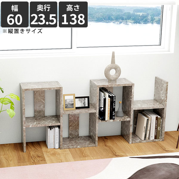 オープンシェルフ 本棚 4段 マガジンラック 鏡面 ディスプレイシェルフ パーテーションラック 大理石風 A4 飾り棚 ディスプレイ棚 衝立 おしゃれ グレー ジグザグラック 木製 ついたて ディスプレイラック 幅60cm 間仕切り インテリア 石目柄 S字ラック リビング 日本製 ★