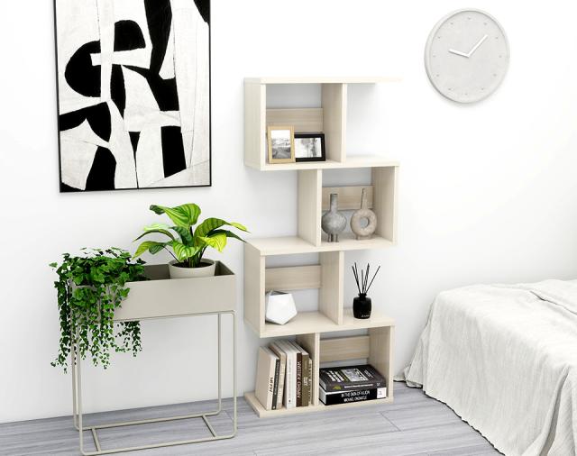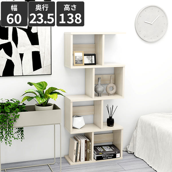 ディスプレイシェルフ パーテーションラック マガジンラック 4段 衝立 仕切り 木製 ディスプレイラック 北欧 オープンラック ディスプレイ棚 ジグザグラック A4 幅60cm 間仕切り 本棚 おしゃれ ホワイトウッド S字ラック 鏡面 リビング収納 薄型 飾り棚 インテリア 日本製 ★