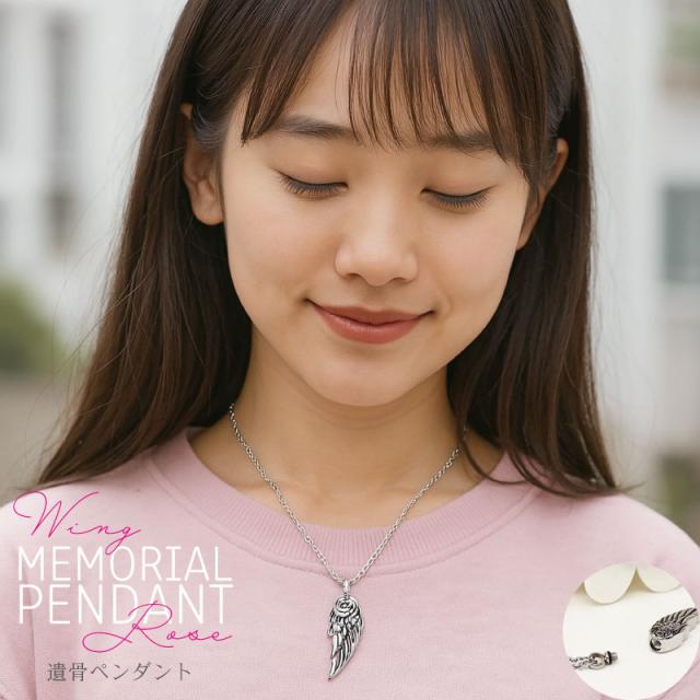 遺骨ペンダント ウイング 羽 薔薇 ローズ 防水 ステンレス メモリアルペンダント 小さめ 遺骨カプセル 遺骨キーホルダー 遺骨アクセサリー ペット供養 分骨 手元供養 犬 猫 小豆 チェーン