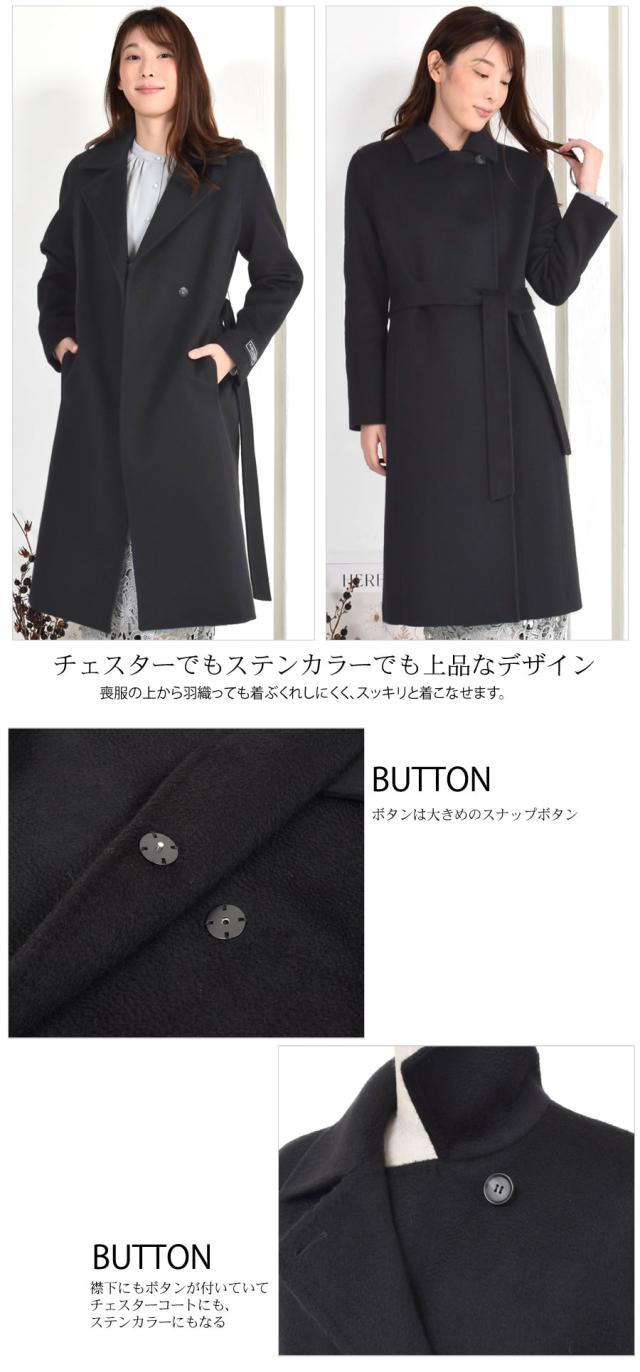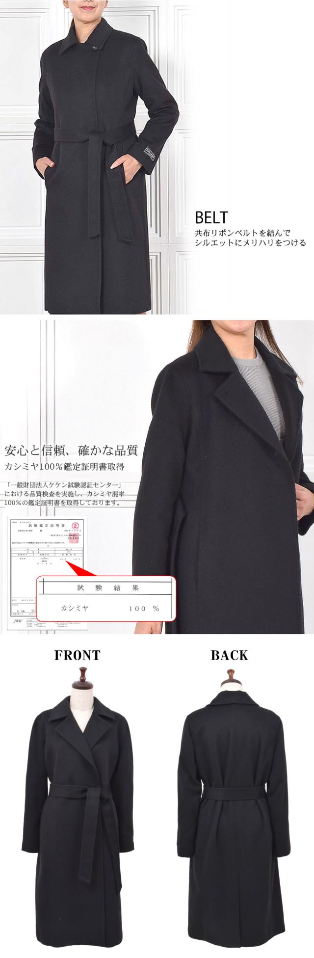 カシミヤ コート レディース カシミヤ100% 厚手 ウェービーカシミヤ ロングコート 冠婚葬祭 テーラード ロング丈 ベルト付き 裏地 キュプラ 通勤(ca4026)