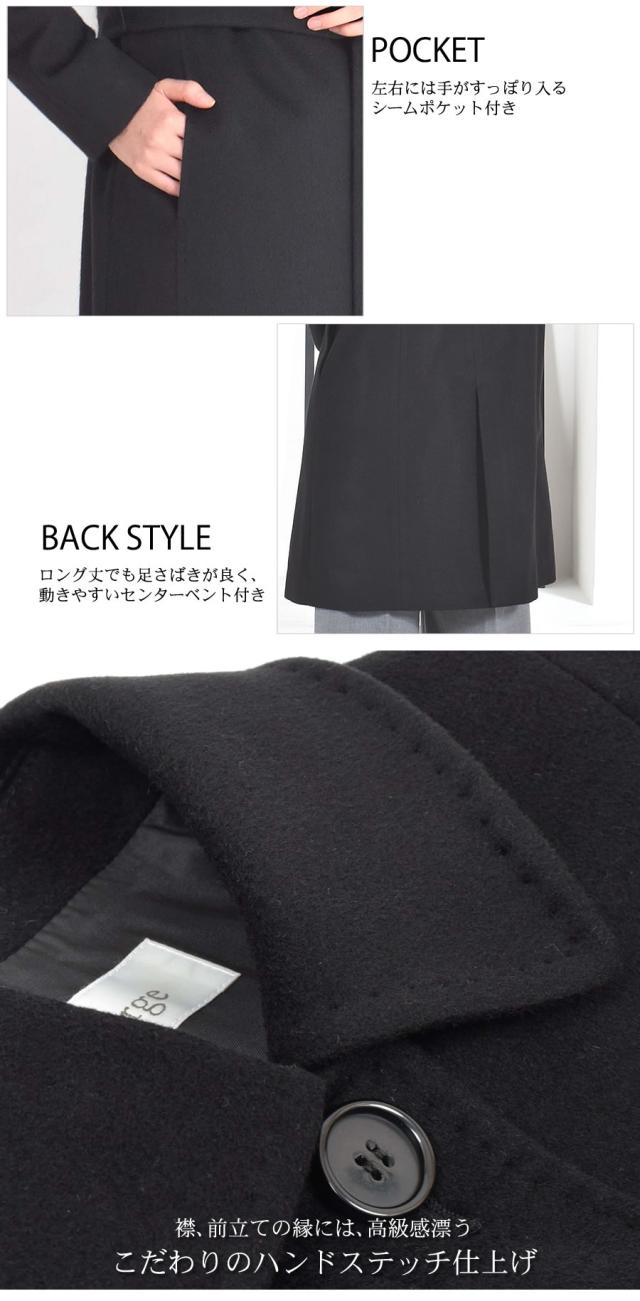 上質な素材が放つ艶感は、やはり格別。ウェーブ加工を施したカシミヤ100%素材を使用し、絶妙な分量感でこれ以上無い程の高級感と美しさをもたらしてくれます。日常から冠婚葬祭のフォーマルシーンまで使える大人のブラックコート。ボタンの留めかたでチェスターにもステンカラーにもなる2WAYデザイン。素材の上品な表情を際立たせるためミニマルなデザインに仕上げてたのでエレガントにもカジュアルにも着こなせます。トレンドにとらわれず、長くご愛用いただける大人のための上質な一着です。