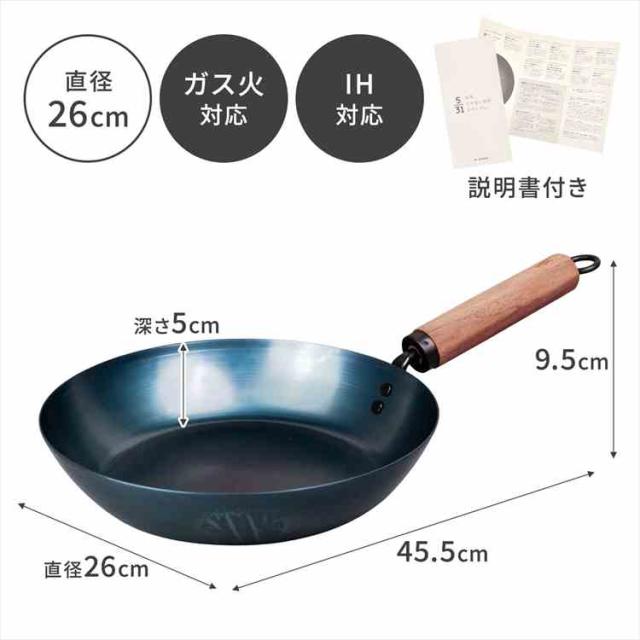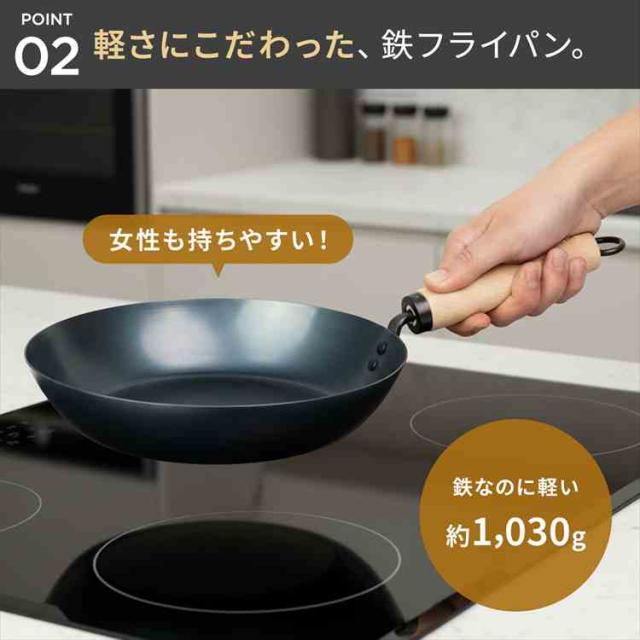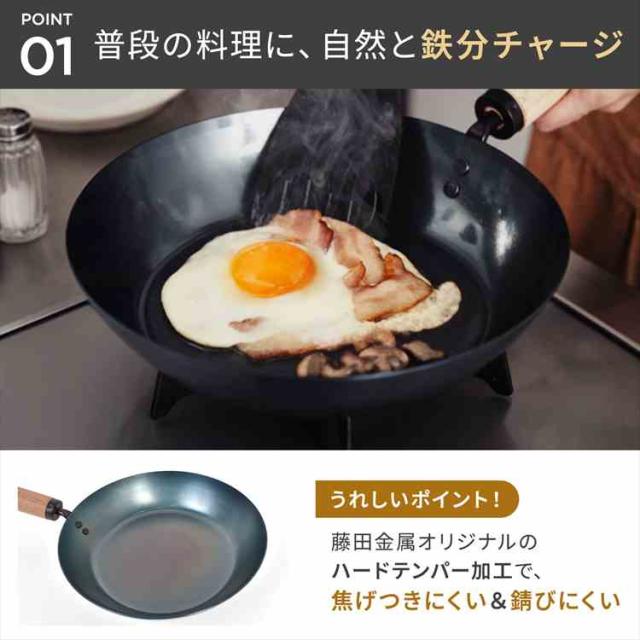 鉄フライパン 藤田金属 元気じゃない日のフライパン IH ガス火 対応 日本製 26cm 軽い 深型 鉄製 鉄器 フライパン 鉄分補給 シーズニング不要 油ならし不要 簡単 手入れ くっつかない 錆びにくい 焦げ付かない おしゃれ シンプル ウォルナット ブナ 天然木 FUJITA KINZOKU