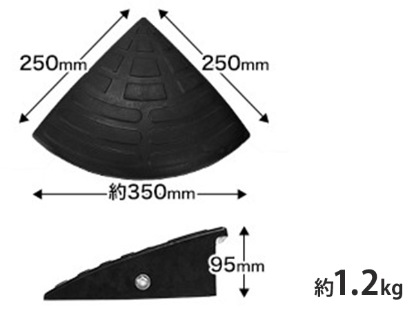 品番 MRS-10C 商品名 10cm段差用ゴムスロープ タイプ コーナー 材質 合成ゴム サイズ L250×D250×H95mm 材料生産国 シンガポール製 製造 ベトナム製 重量 約1.2kg