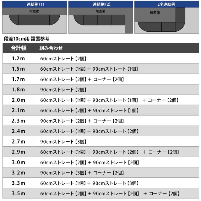 段差プレート 10cm段差用 高品質天然ゴム使用 幅90cm ストレート4個+コーナー2個セット [段差解消スロープ 段差スロープ 段差 ステップ]