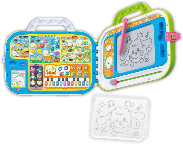 「これなあに?」「どんな音?」「やってみたい!」にこたえる充実のメニュー! 色や食べ物の名前、乗り物、楽器の音、動物の鳴き声、ワンワンが色々なものを紹介してくれます。おしゃべりと楽しい音100コ以上、タッチがいっぱい70コ! メロディは番組曲「ピカピカブ?!」を含む5曲入り。本体右側はおえかきボードで、なぞって描けるおえかきシート付きです。バッグ型なので持ち運びもお片づけも簡単です。