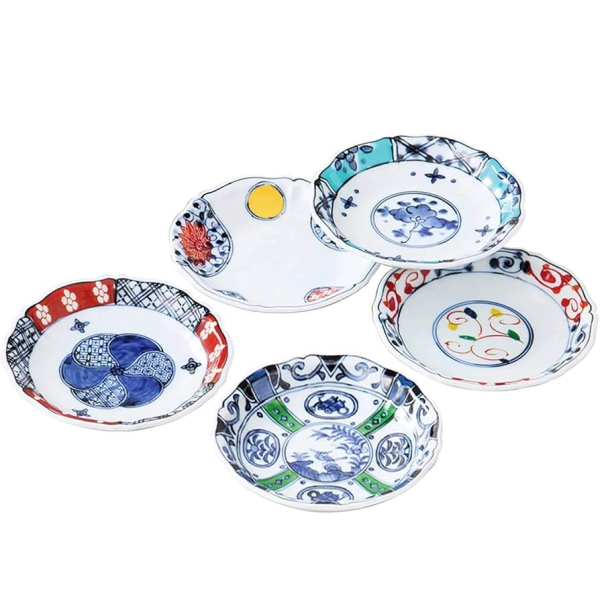 波佐見焼 錦絵変り 小皿揃 19545 5個、和皿、食洗器可、電子レンジ可、西海陶器、日本製、国産、化粧箱入、送料無料、お祝い事、普段使い