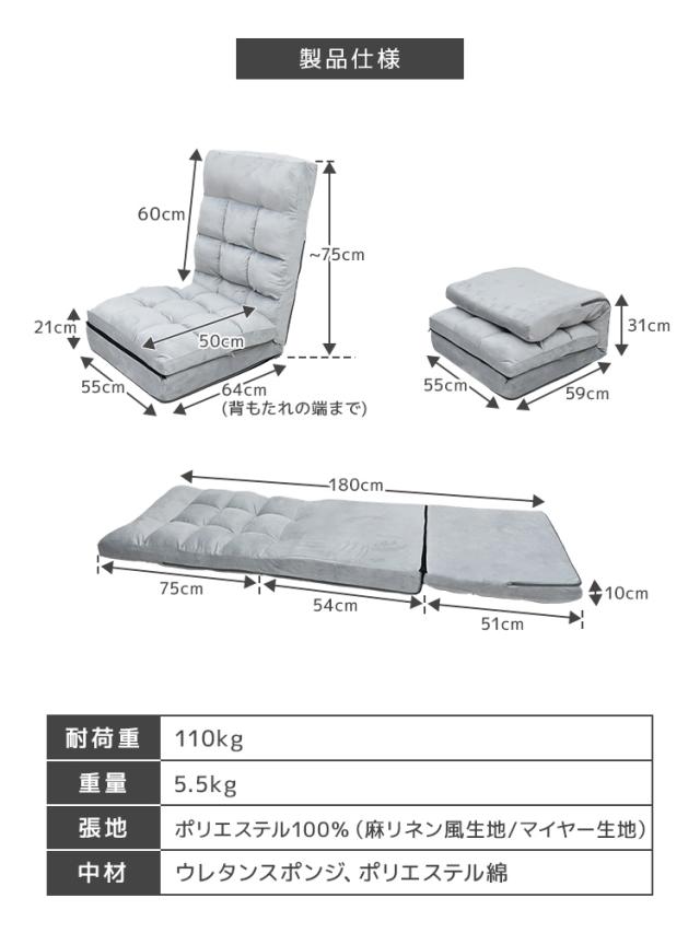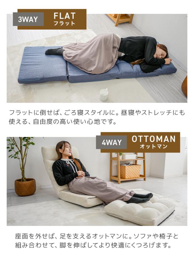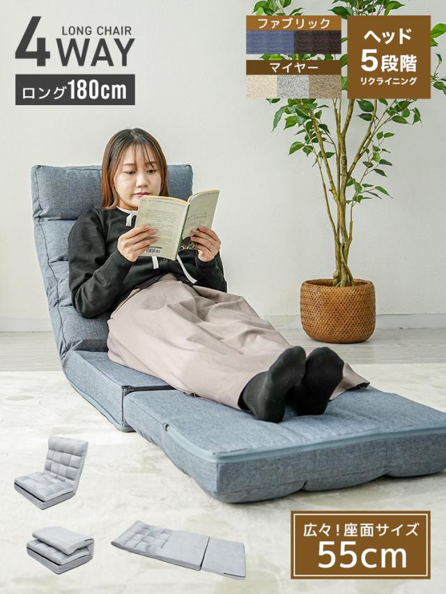 座椅子 ハイバック 4WAY リクライニング 42段階 幅 55cm ヘッドギア 5段階 極厚 3層構造 一人掛け ファブリック 麻 マイヤー リクライニング座椅子 椅子 イス フロア チェア チェアー ソファ ソファー ソファベッド ソファーベッド コンパクト 折り畳み ISO認定工場 送料無料