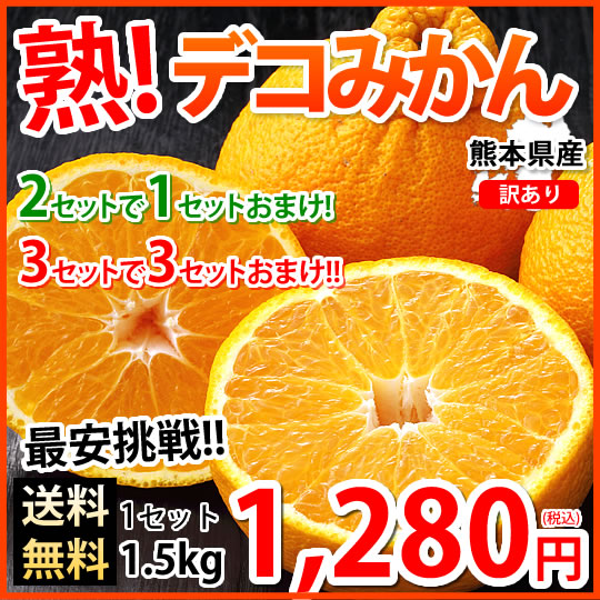 デコポン 同品種 訳ありデコみかん 1.5kg S-3L 送料無料 2セット購入で1セットおまけ 3セット購入で3セットおまけ 熊本県産 フルーツ みかん ミカン 蜜柑