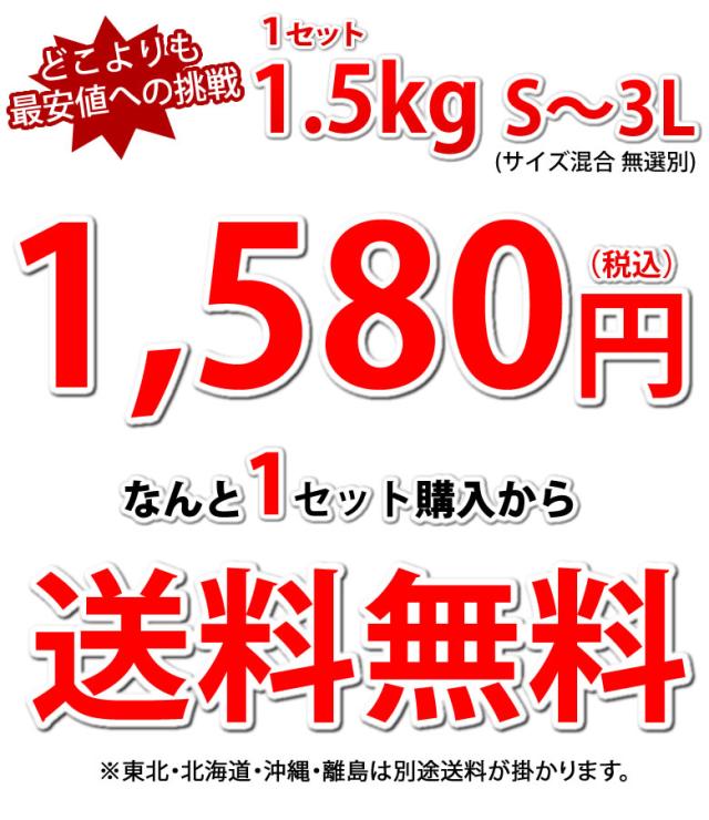 1.5kg 約5玉前後〜約10玉前後(S〜3Lサイズ混合)