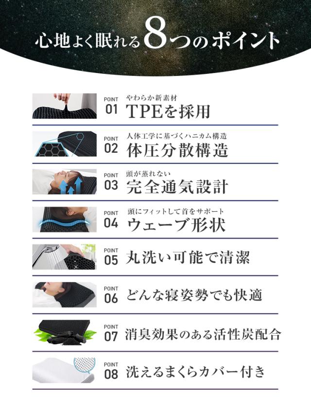枕 無重力枕 ジェル 枕カバー付 まくら 無重力 ハニカム構造 体圧分散 活性炭 抗菌 消臭 ウェーブ 丸洗い可能 通気性 寝返り 横向き 仰向け 肩こり いびき ストレートネック 予防 防止 TPE 高反発枕 ギフト プレゼント