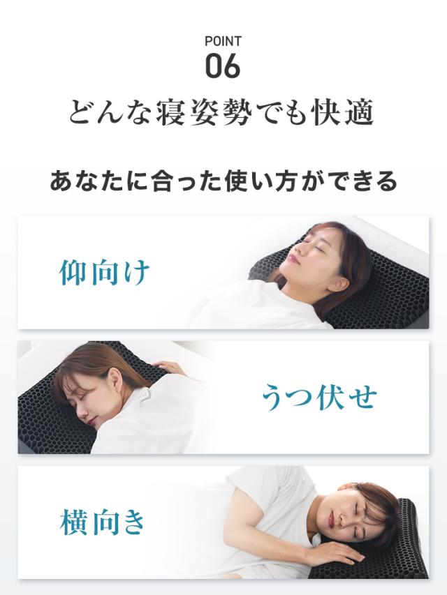 横向き・仰向け・うつ伏せ、どの体勢でも自然にフィットし、快適な寝姿勢をサポートします。