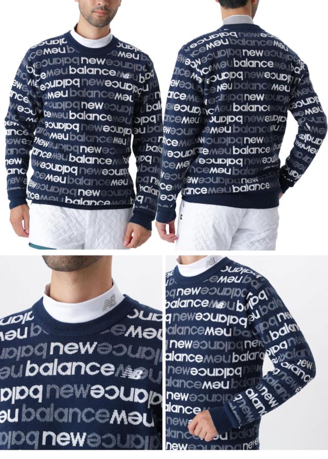 ニューバランス アップサイドダウンロゴボーダー 吸湿発熱 クルーネック ニット プルオーバー 012-5270004 メンズ 長袖 ゴルフウェア newbalance 2025秋冬モデル 日本正規品