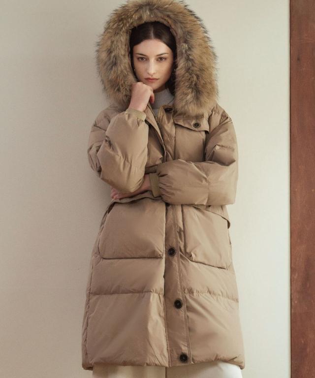 ラクーンファー付き 軽量 フーデッド ダウンコート