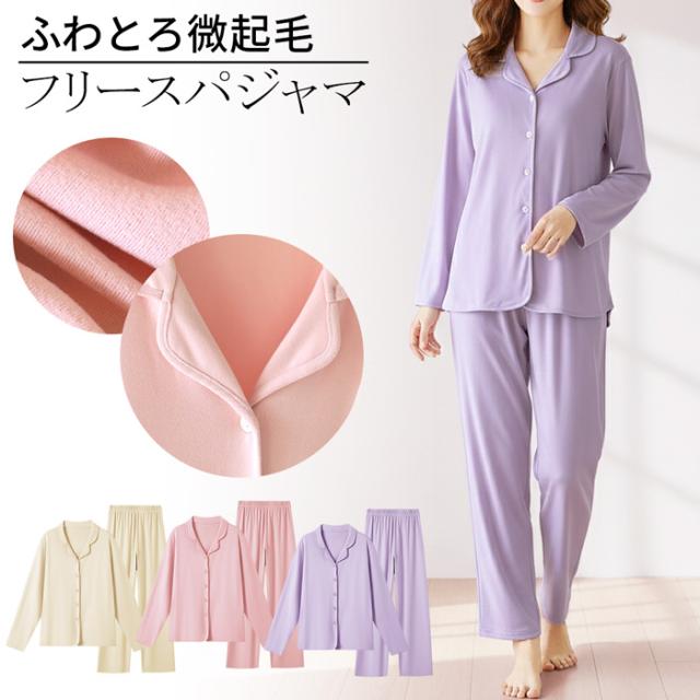 レディース パジャマ ルームウェア 上下セット 長袖 起毛 あったか 伸縮性 快適 シンプル ゆったり 軽量 やわらか フリース 大きいサイズ pjm-022 プレゼント ギフト 母の日 父の日 敬老の日 バレンタイン ホワイトデー クリスマス